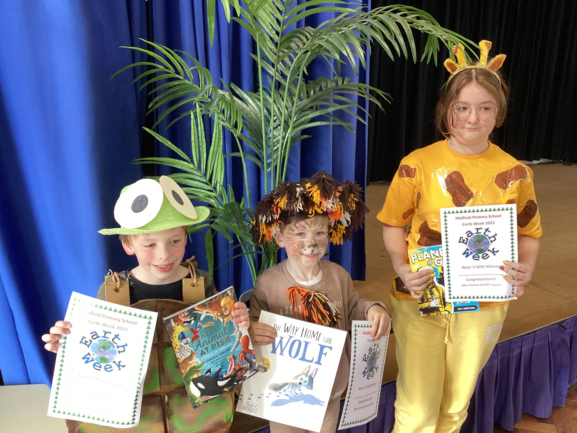 Children wearing the winning costumes from EYFS, KS1, LKS2 and UKS2, all got an environment-themed booked as their prize.