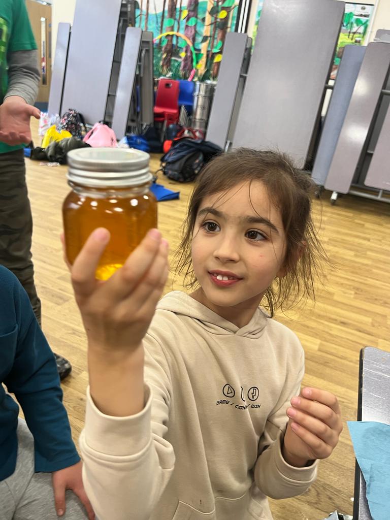 The honey was potted up by Bee Club, and sold on Parents' Evening. It was hugely popular, and we sold out in no time!