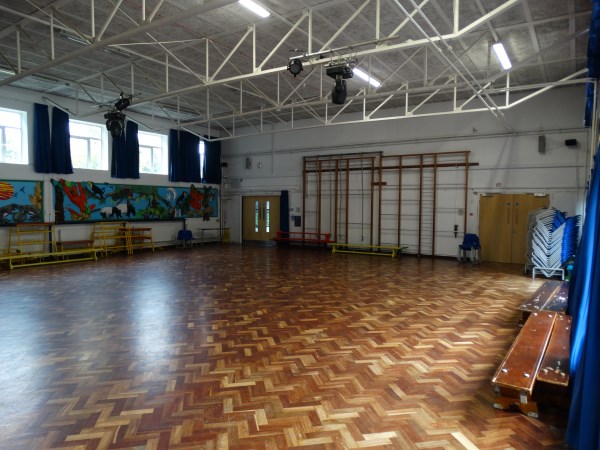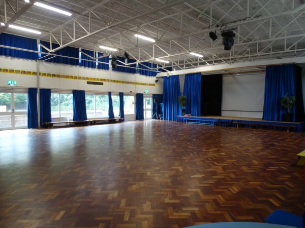 Our spacious Main Hall has attractive wooden flooring. The floor to ceiling windows give plenty of natural light and the curtains can be drawn to create a dark environment. There is access to the playground.