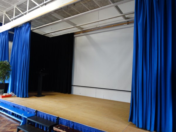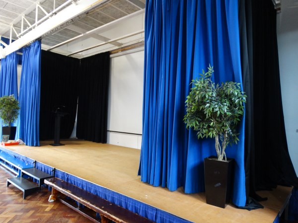 • A permanent stage with curtains