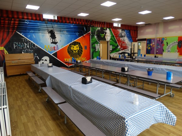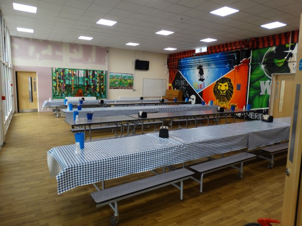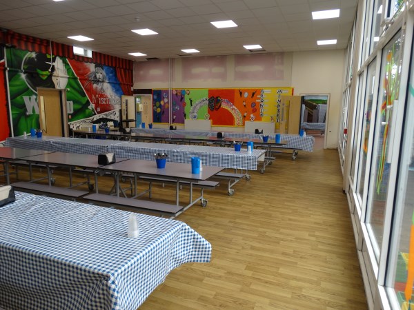 The Dining Hall is a large bright space with floor to ceiling windows. It is equipped: